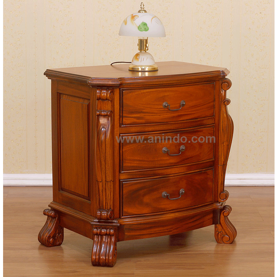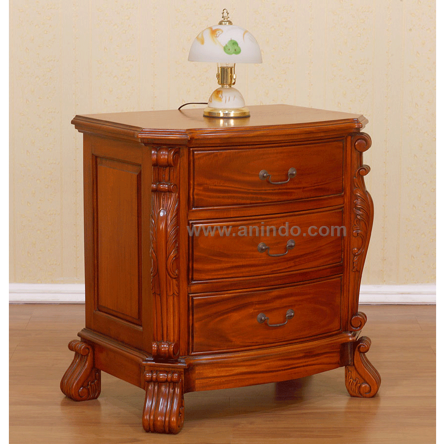 Toronto bedside cabinet 3 drawers is made of mahogany wood in tea brown finish. Antique ...
