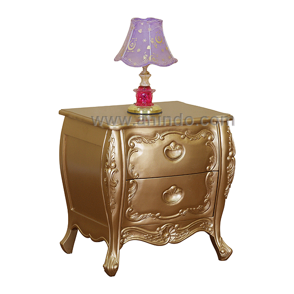 Pullman bedside cabinet 2 drawers is made of mahogany wood in gold painted finish.