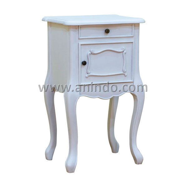Colonial bedside cabinet 1 door 1 drawer is made of mahogany wood in distressed white ...