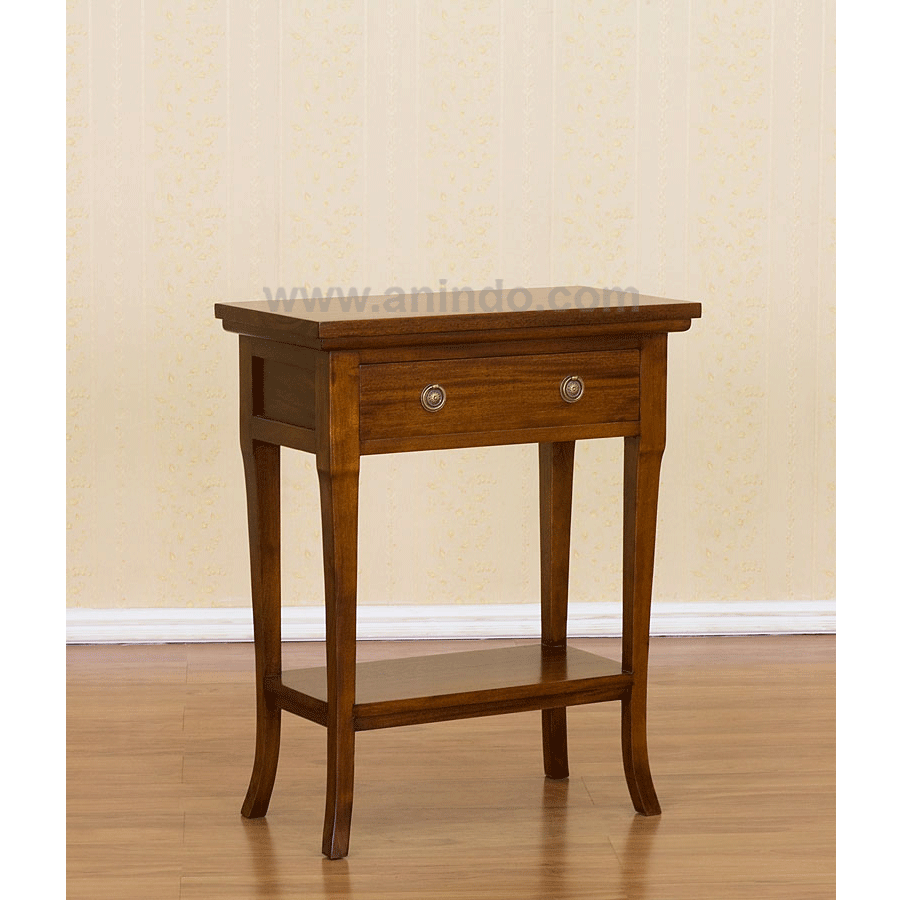 Sosa bedside table 1 drawer 1 shelf is made of solid mahogany wood in pecan finish. Antique solid brass handle.