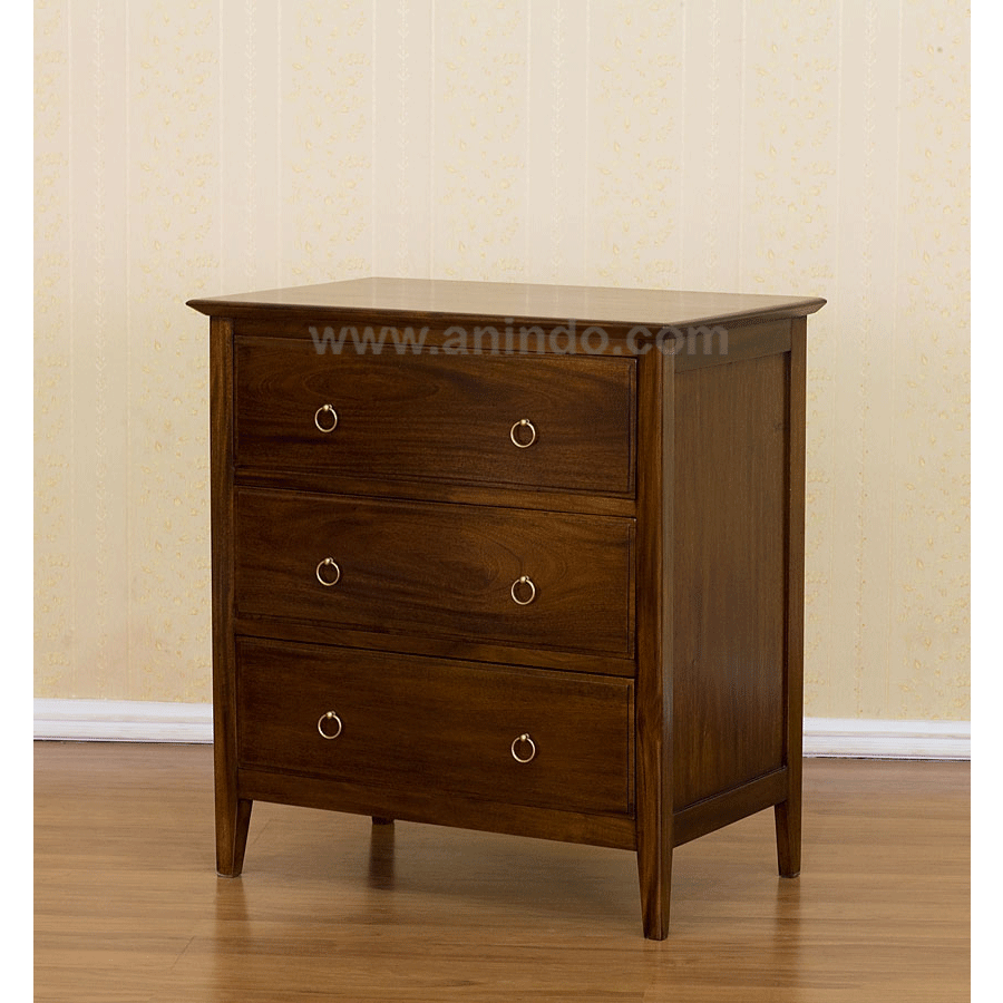 Chest 3 drawers is made of solid mahogany wood in walnut finish.