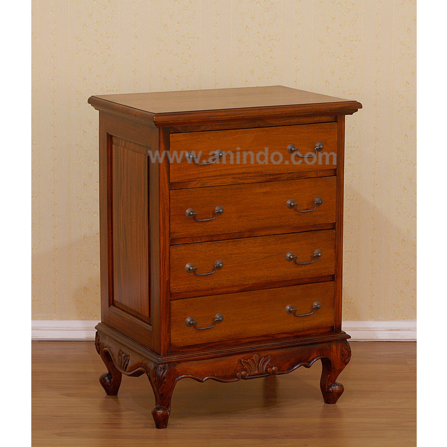 4 drawers chest is made of solid mahogany wood in walnut finish.