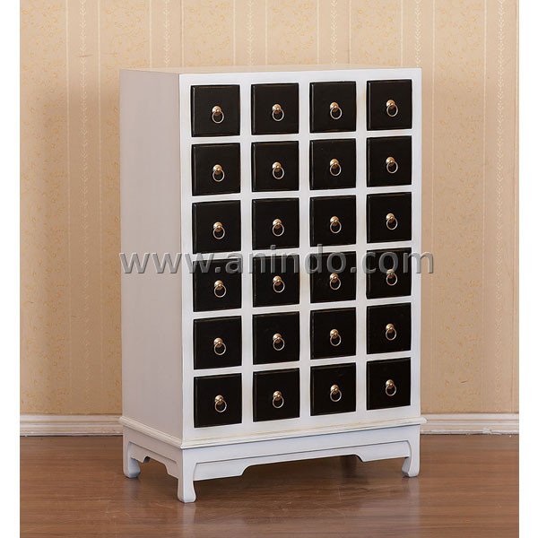 Chest 24 drawers is made of mahogany wood in white combined with black painted finish on the drawers.