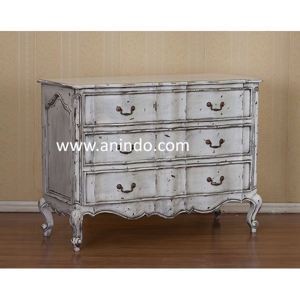 Chest 3 drawers is made of sustainable mango wood in antique distressed white painted finish. Antique solid brass handles.