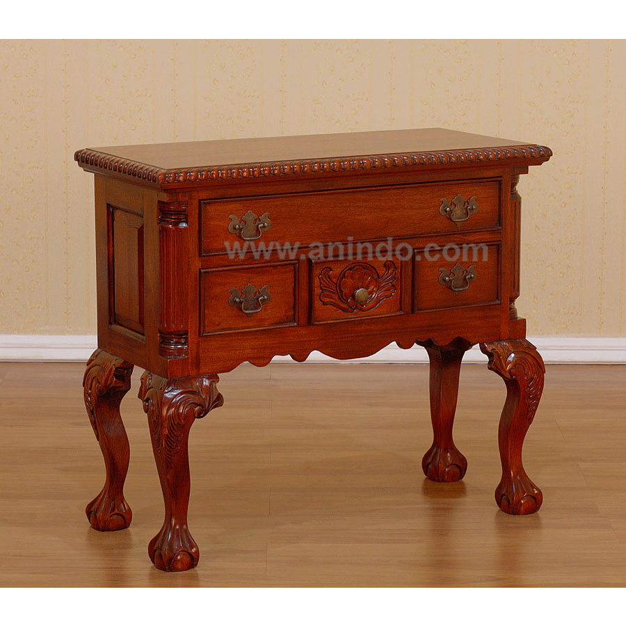 Chippendale low boy 4 drawers is made of solid mahogany wood in walnut finish.
