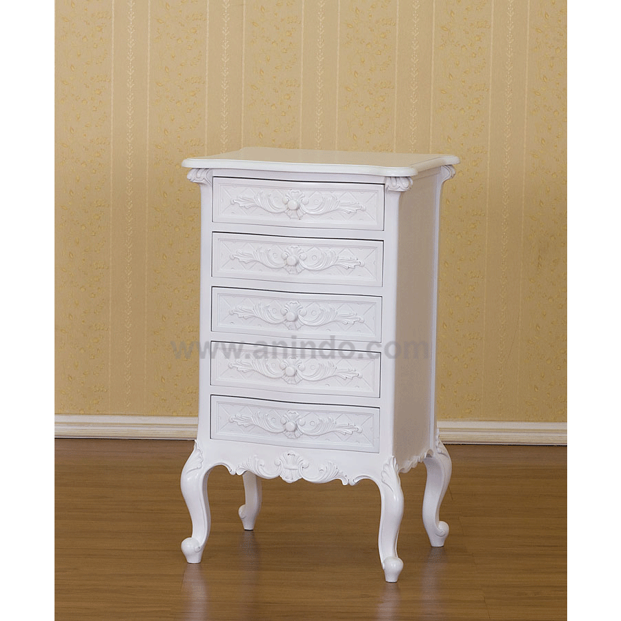 Our french chest 5 drawers is made of mahogany wood in antique white painted?finish.