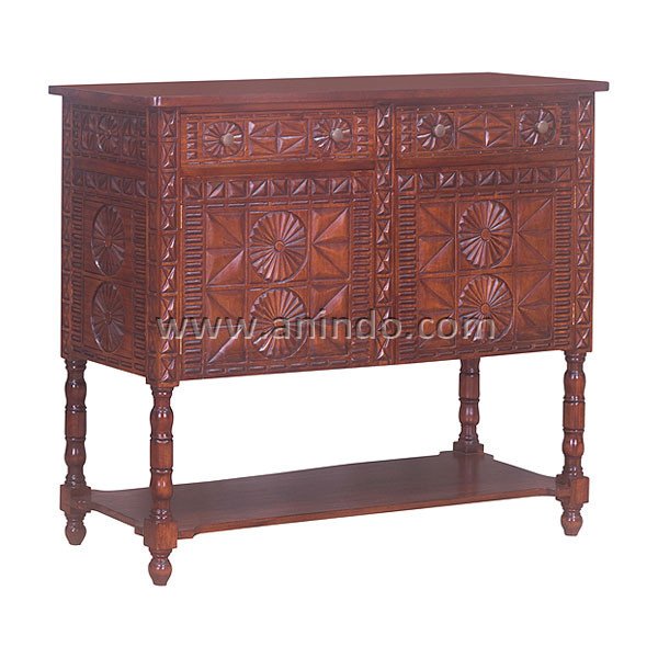 Rococo chest 2 doors is made of solid mahogany wood in pecan finish.