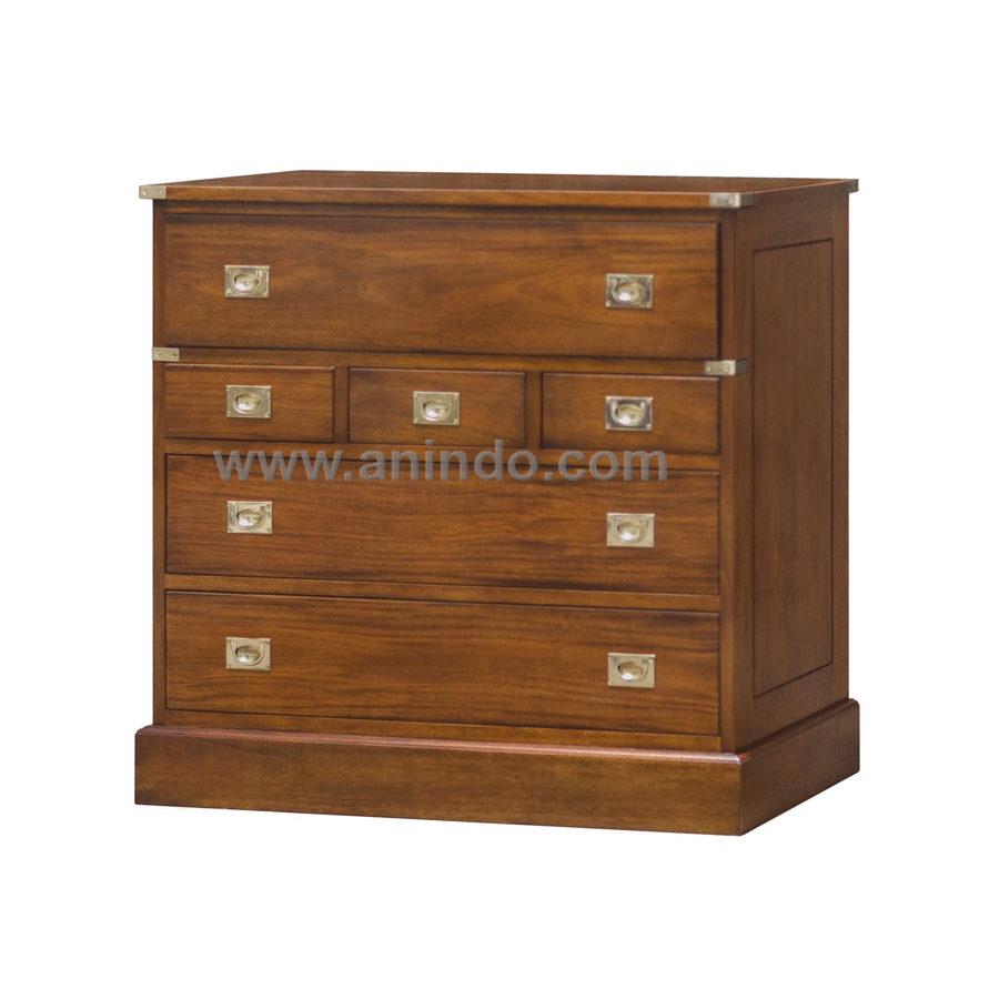 Military chest 5 drawers is made of solid mahogany wood in pecan finish.