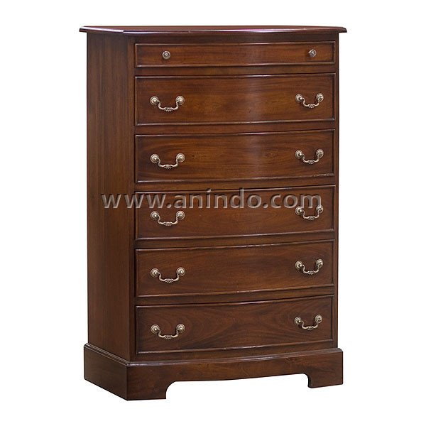 Sleigh 6 drawers chest is made of solid mahogany wood in pecan finish. Antique solid brass ...