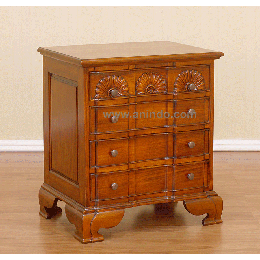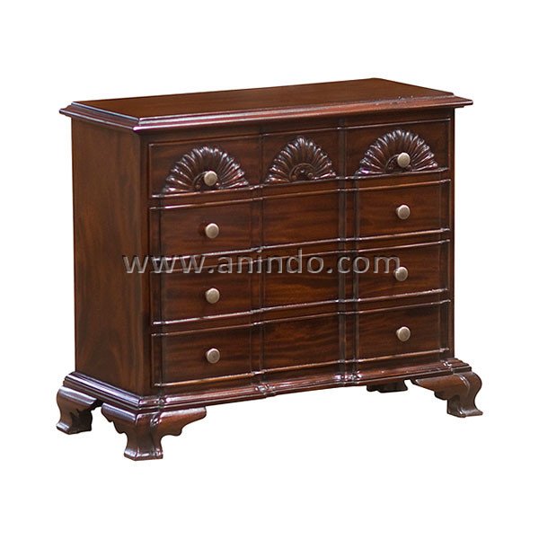 Chippendale low boy 4 drawers is made of solid mahogany wood in walnut finish.