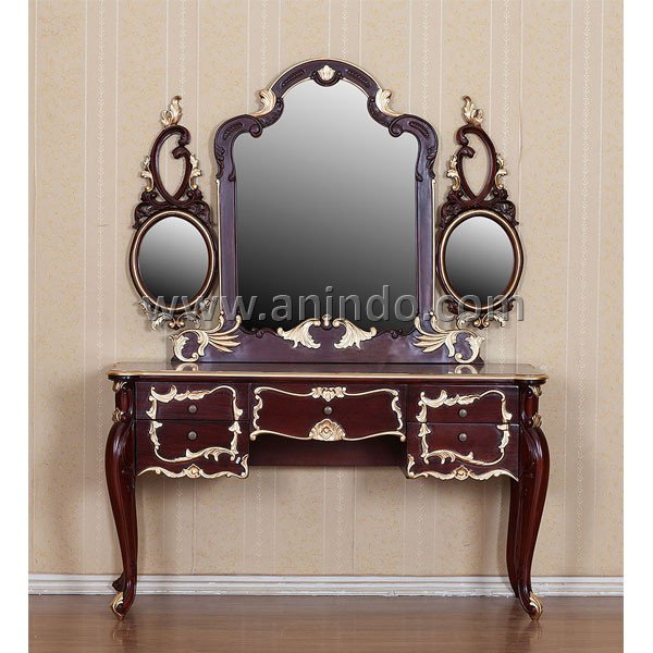 Our mirror dressing table is made of mahogany?wood in red mahogany combined?with gold painted finish.