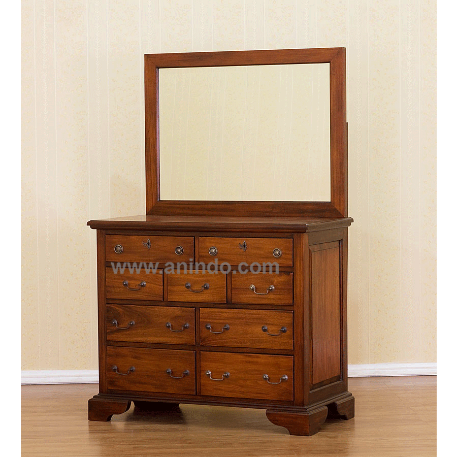 Poster dressing table 9 drawers with mirror is made of solid mahogany wood in pecan finish. ...