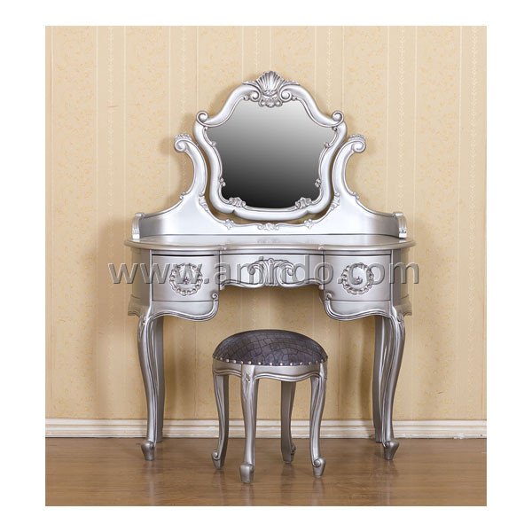 Our?marvellous dressing table with mirror is made of mahogany wood in silver?leaf ...