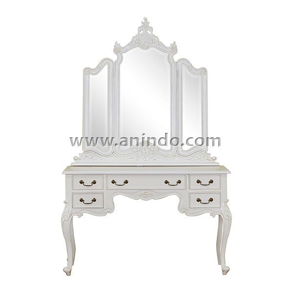 Our french carved dressing table with triple mirror is made of mahogany wood in white ...