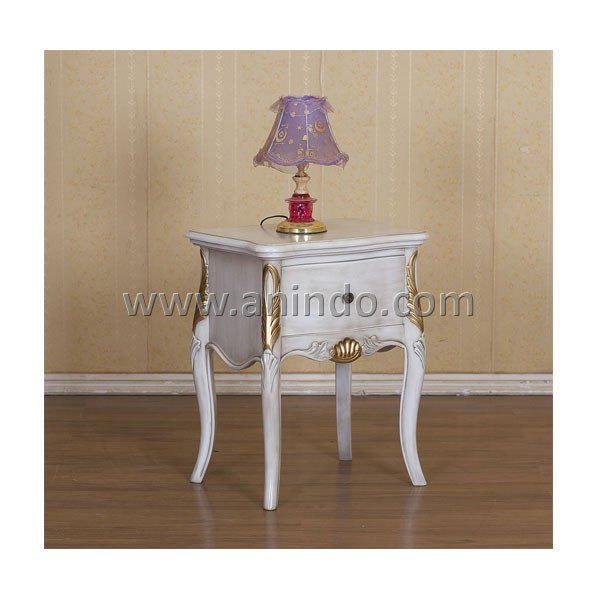 Kalongan 1 drawer bedside table is made of mahogany wood in aged white combined with gold painted finish.