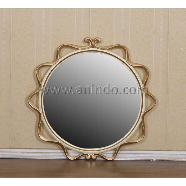 Lampitan mirror is made of solid mahogany wood in ivory combined with gold painted finish.