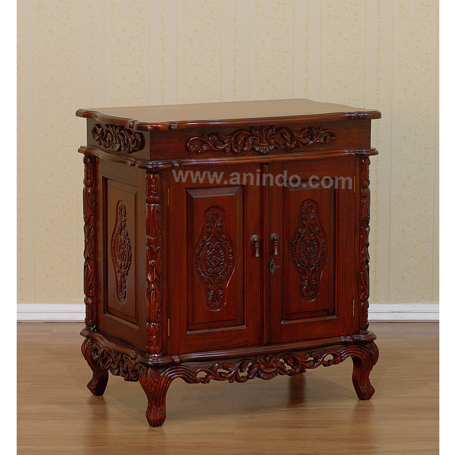 Our small carved buffet?is made of?mahogany wood in walnut finish.