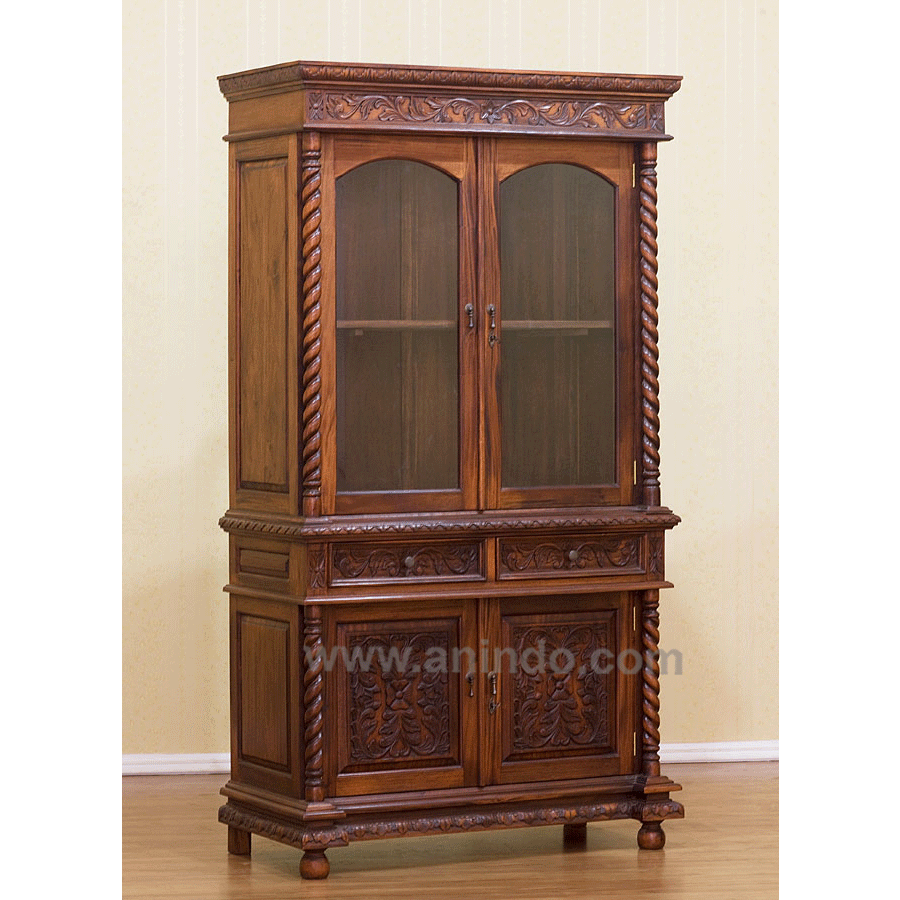 China cabinet carved is made of solid mahogany wood in standard finish.