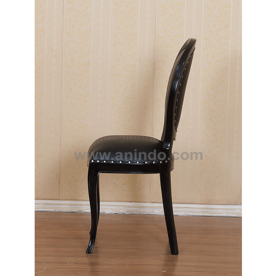 Our oval chair is made of mahogany wood in black painted finish. Upholstered in black fake leather.