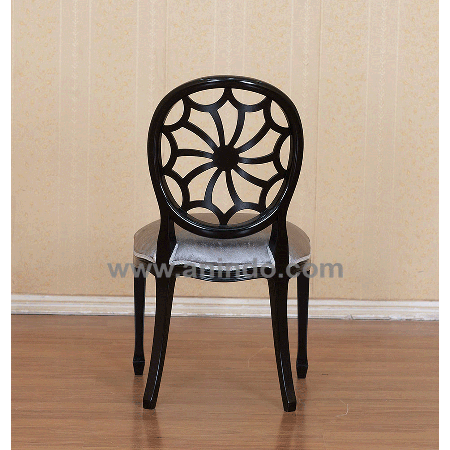 Our spider chair diner is made of?mahogany wood in?black painted finish. Upholstered in grey silk fabric.