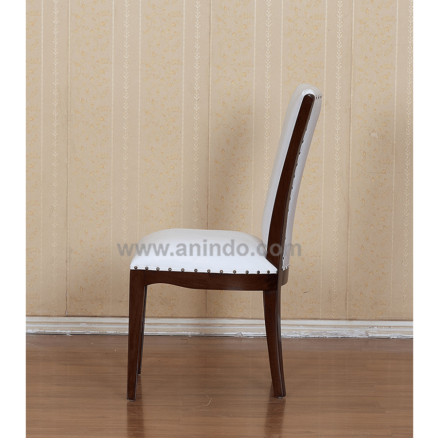 Our?victory dining chair is made of mahogany wood in walnut finish. Upholstered in?white fabric. The fabric is 100% cotton.
