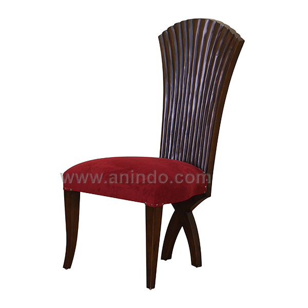 Our ekor chair diner is made of?mahogany wood in walnut finish. Upholstered in red velvet fabric.