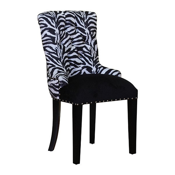 Our full back chair diner is made of?mahogany wood in black painted finish.?Upholstered in black combined with zebra fabric.
