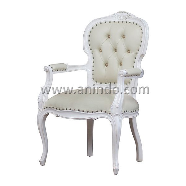 Our jasper chair arm is made of?mahogany wood in white painted finish. Upholstered in cream faux leather.