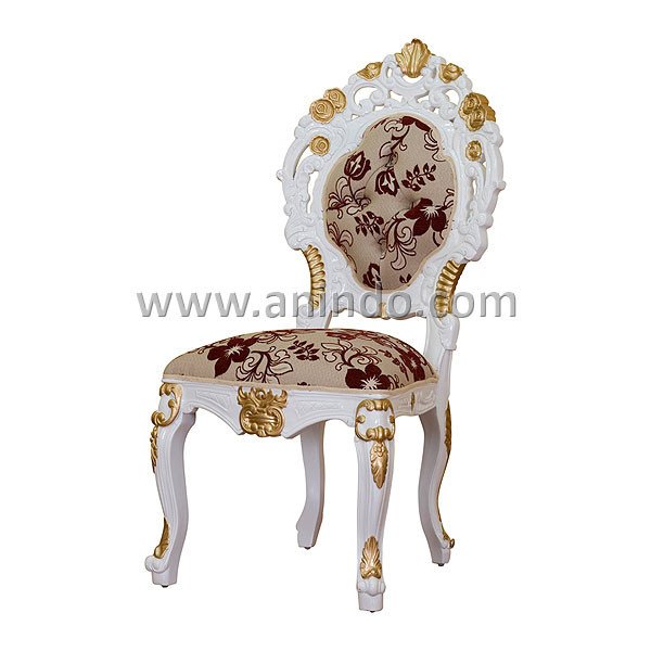 Our jerome chair diner is made of?mahogany wood in?white combined with gold painted finish.?Upholstered in brown floral fabric.