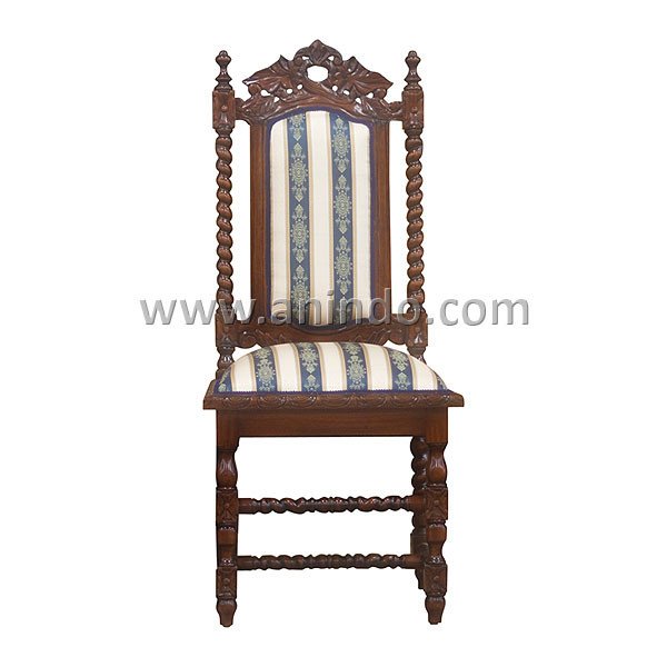 Our jacobean dining chair is made of mahogany wood in walnut finish.Upholstered in?green stripes fabric.