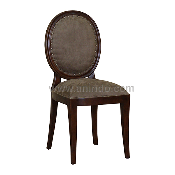 Our oval chair diner is made of?mahogany wood in tea brown finish. Upholstered in brown suede fabric.