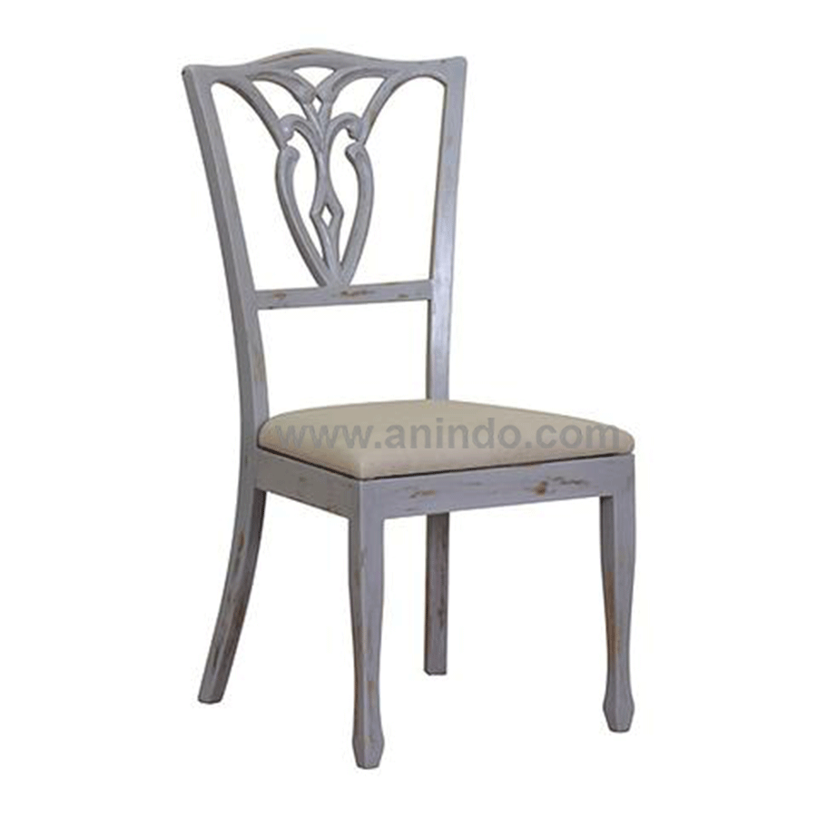 Our york chair diner is made of?mahogany wood in grey painted finish. Upholstered in cream fabric.