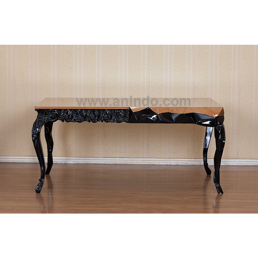 Our?diamond with carved dining table?is made of?mahogany wood in?black painted?finish.