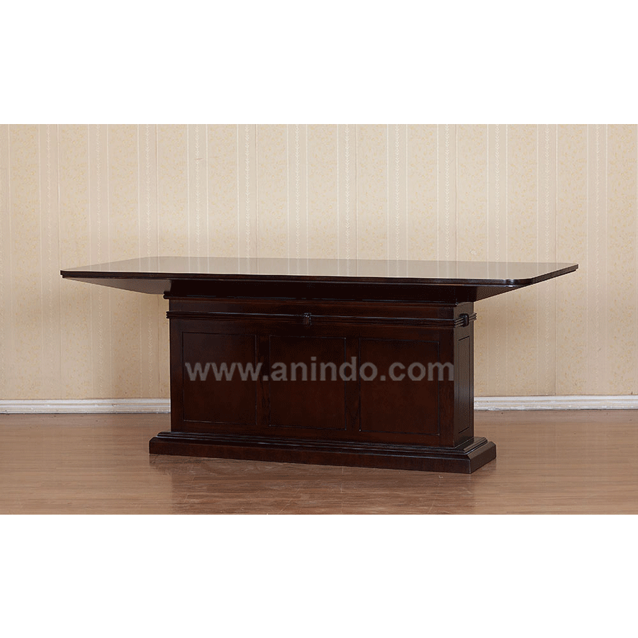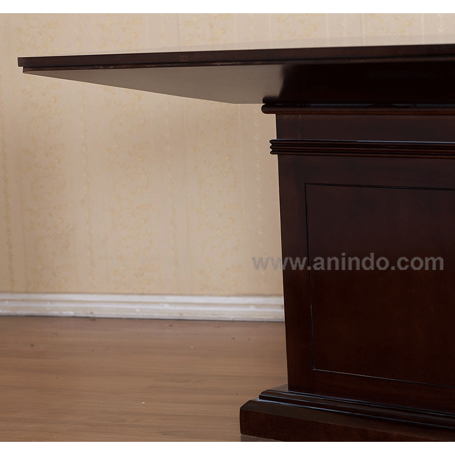 Batavia dining table is made of mahogany wood in walnut finish.