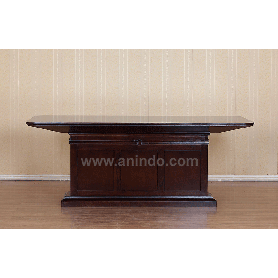 Recta dining table carved is made of solid mahogany wood in walnut finish.