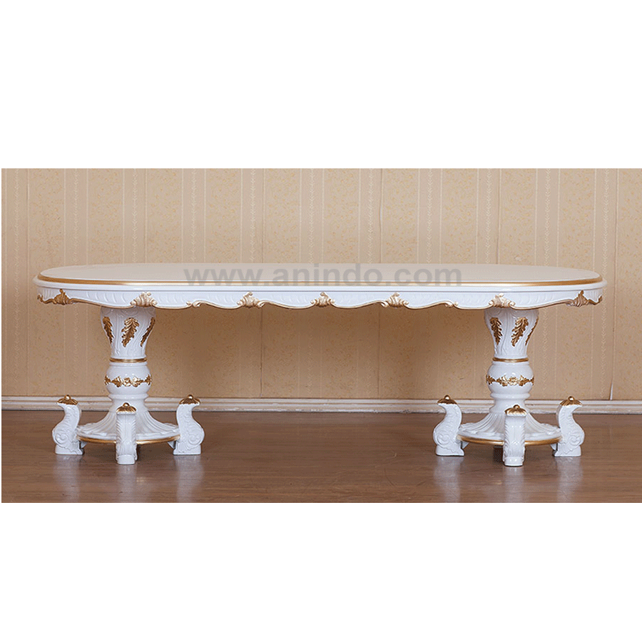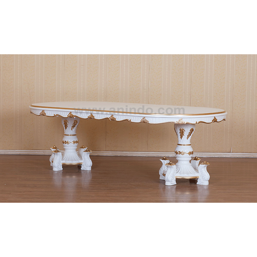 Our?recta carved dining table is made of solid mahogany wood in white combine with gold ...