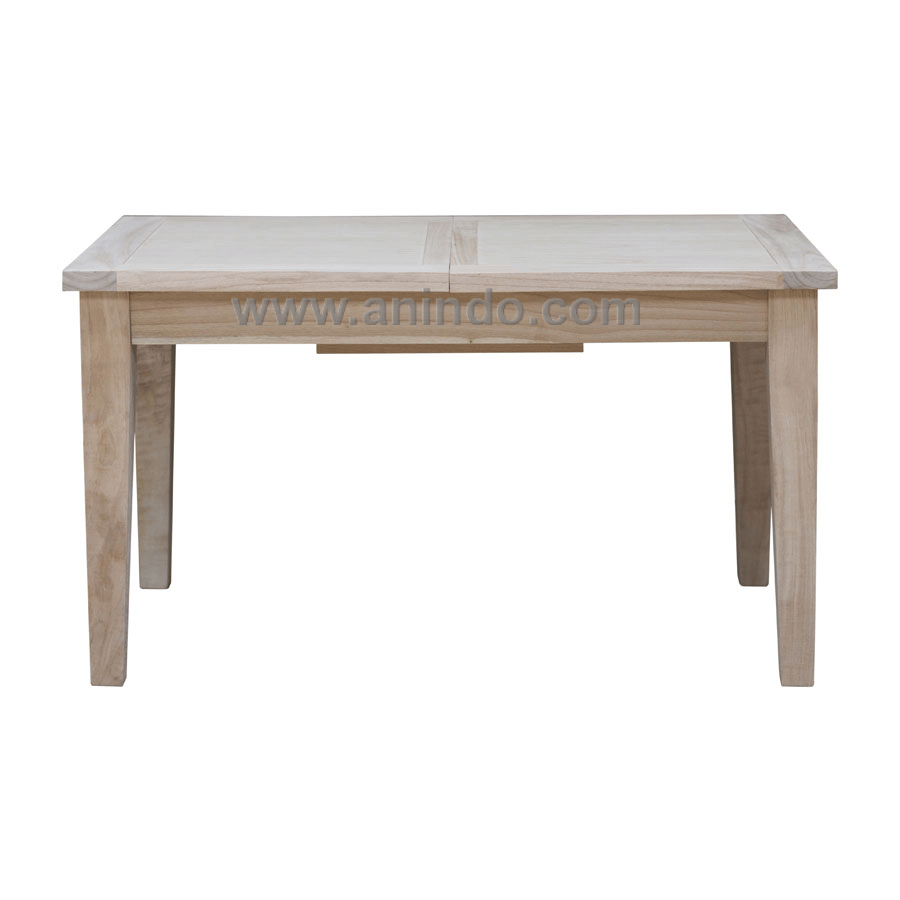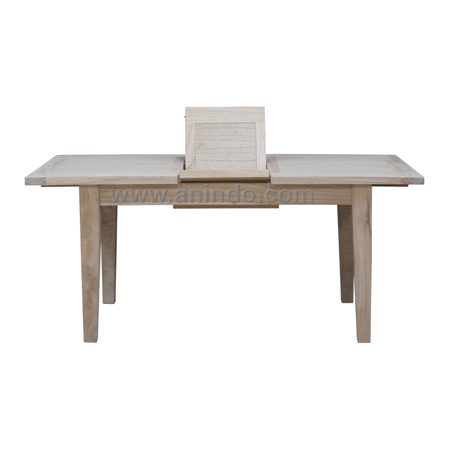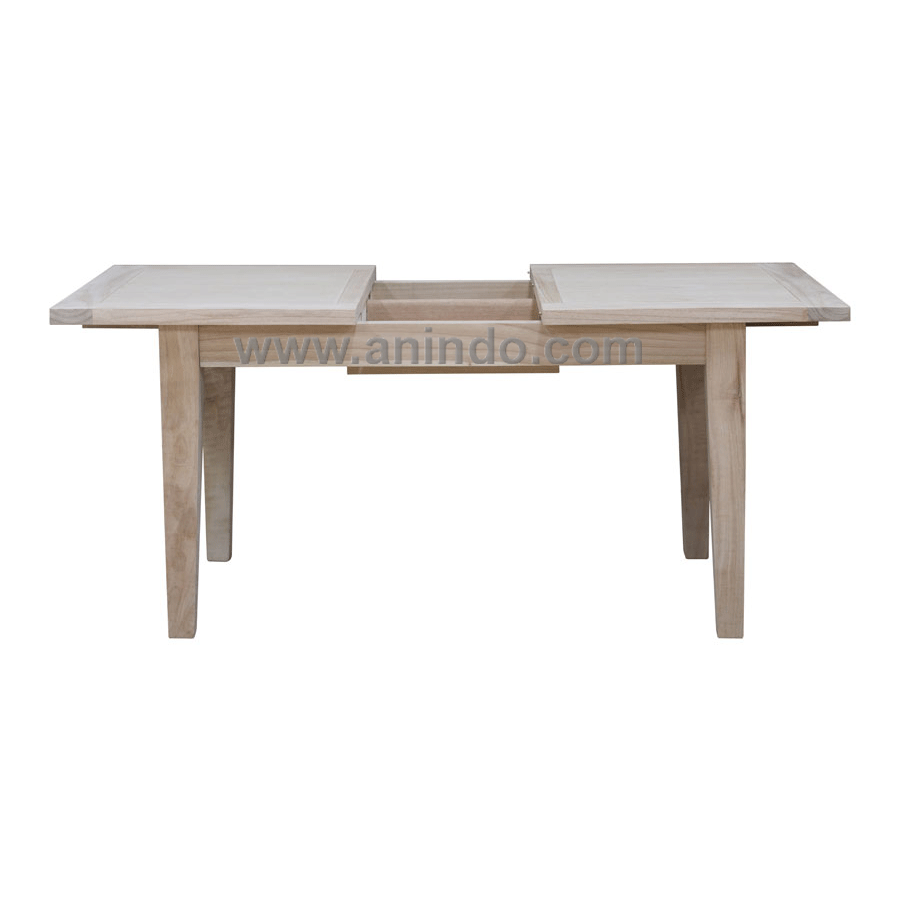 Mindi extension dining table 1 is made of solid mindi wood in natural finish.