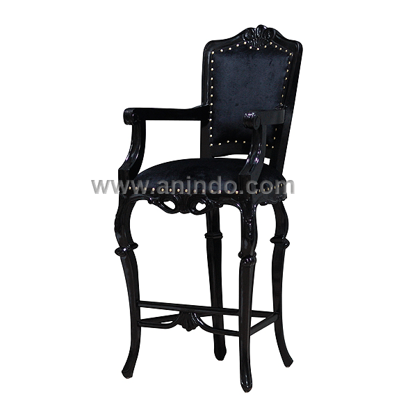 Colonial bar chair with arm is made of solid mahogany wood in glossy black painted ...
