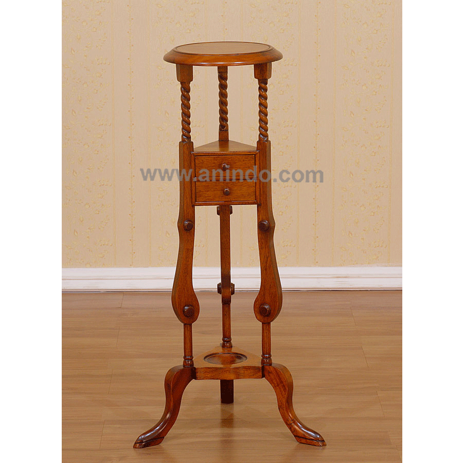 Our plant stand 2 drawers is made of solid mahogany wood in pecan finish.