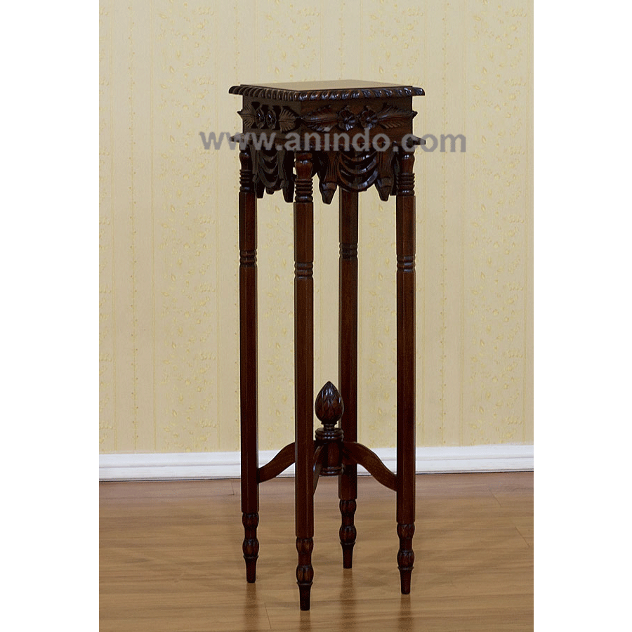 Tall flower stand is made of solid mahogany wood in pecan finish.