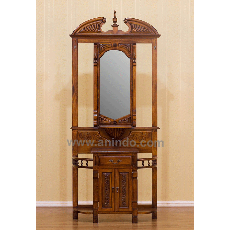 Hallstand mirror carved is made of solid mahogany wood in pecan ...