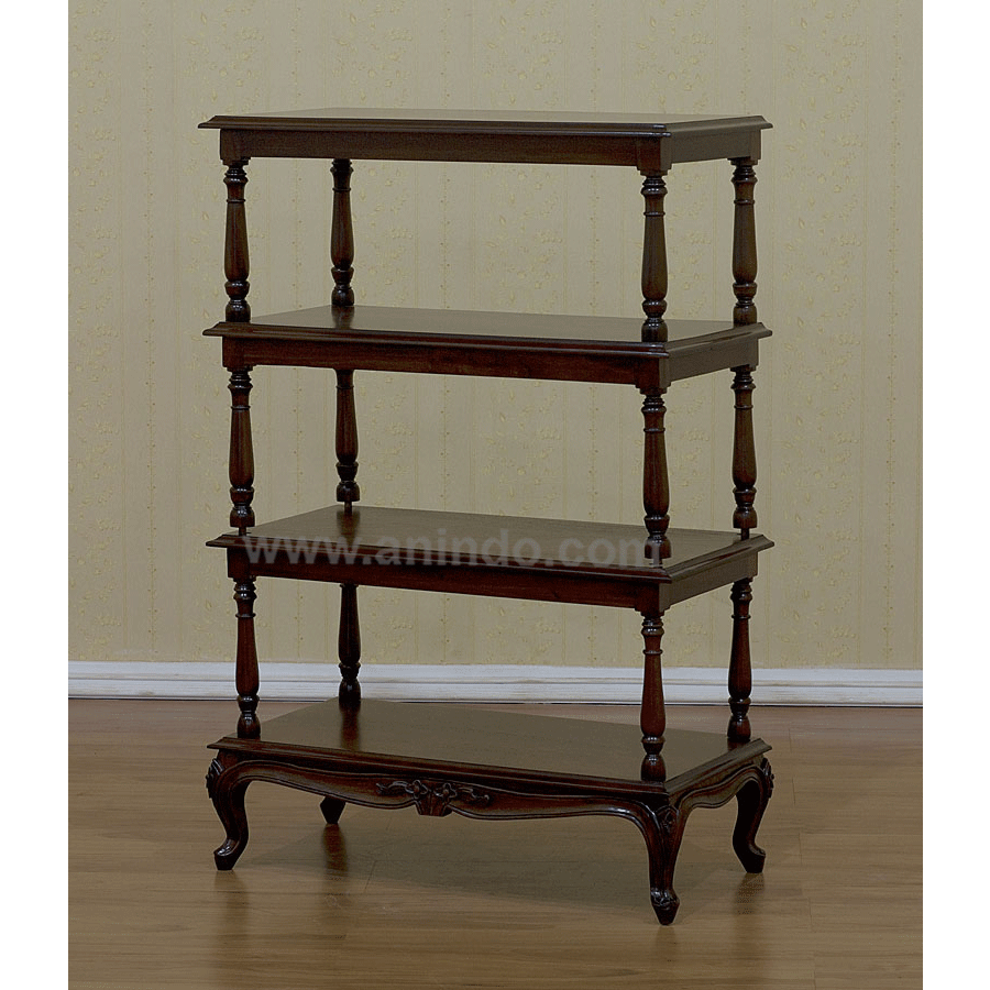 Catherine rack carving 4 shelves is made of solid mahogany wood in walnut finish.