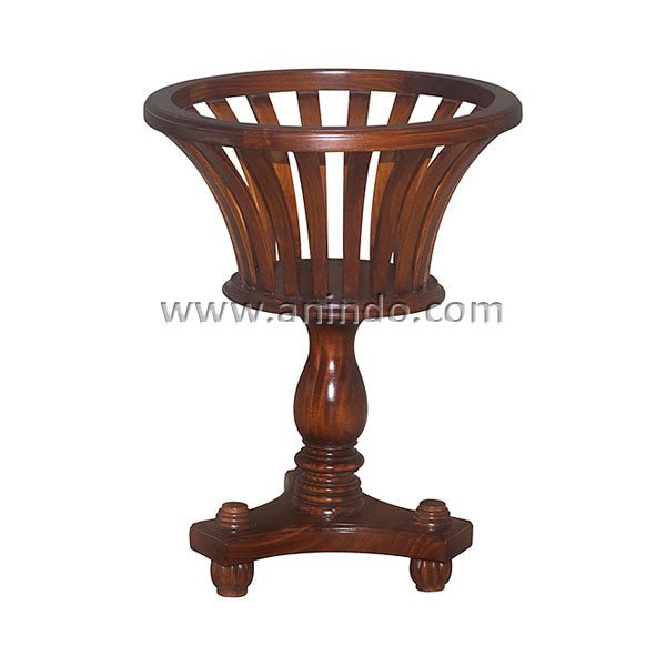 Swan plant stand is made of solid mahogany wood in pecan finish.