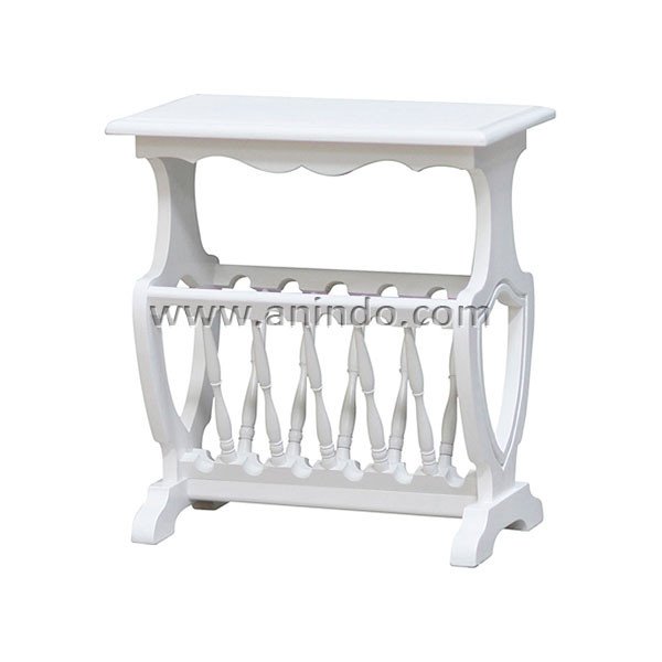 Our magazine rack is made of mahogany wood in white painted finish.
