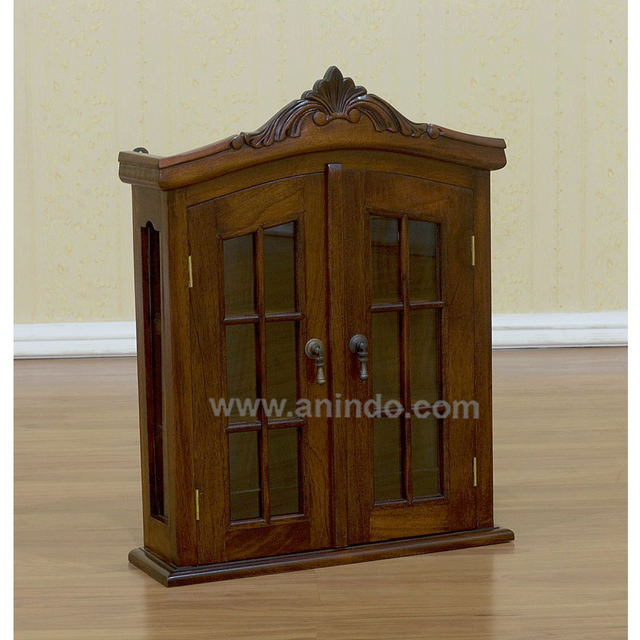 Small hanging cabinet 2 doors is made of solid mahogany wood in walnut finish.