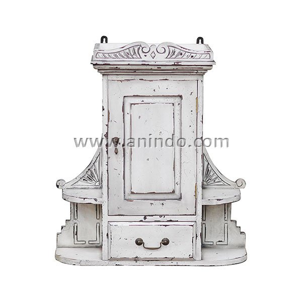 Our medicine rack tall is made of solid mahogany wood in distressed white painted finish.