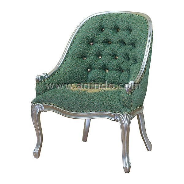 Our angela chair is made of solid mahogany wood in silver leaf finish. Upholstered in green floral fabric.?
