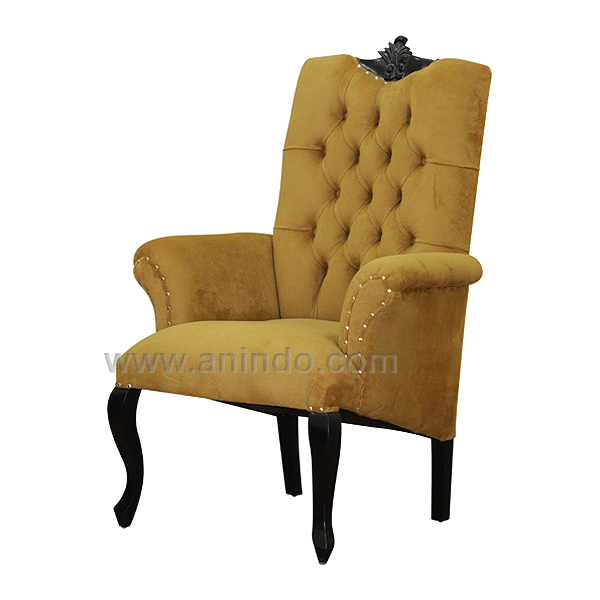 Our lisa chair is made of solid mahogany wood in black painted finish. Upholstered in gold fabric.