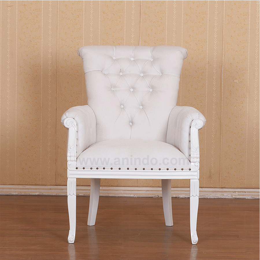 Our?french arm chair?is made of solid mahogany wood in?white painted finish. Upholstered in white fake leather.