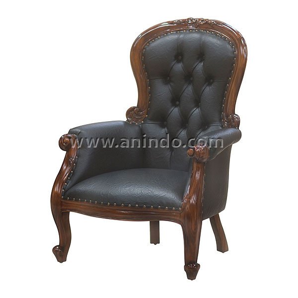 French carved chair 1 seater is made of solid mahogany wood in walnut finish. Upholstered ...